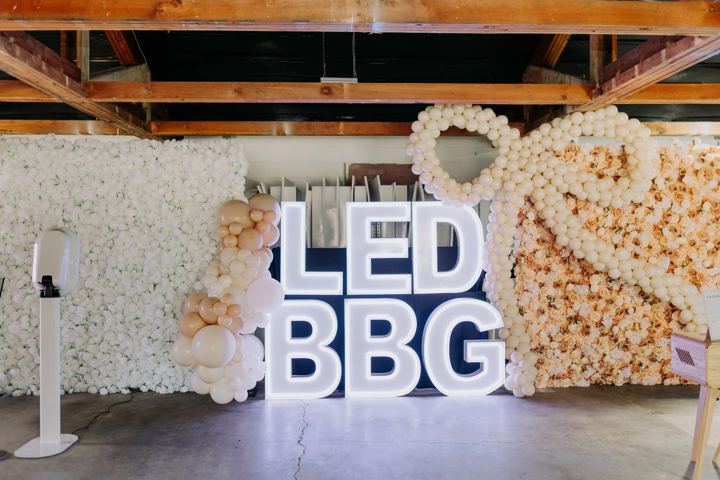 Balloon decor is available for any marquee moment for an additional fee. Our team is available to assist with a design to meet your needs. Please reach out for a custom proposal and quote!